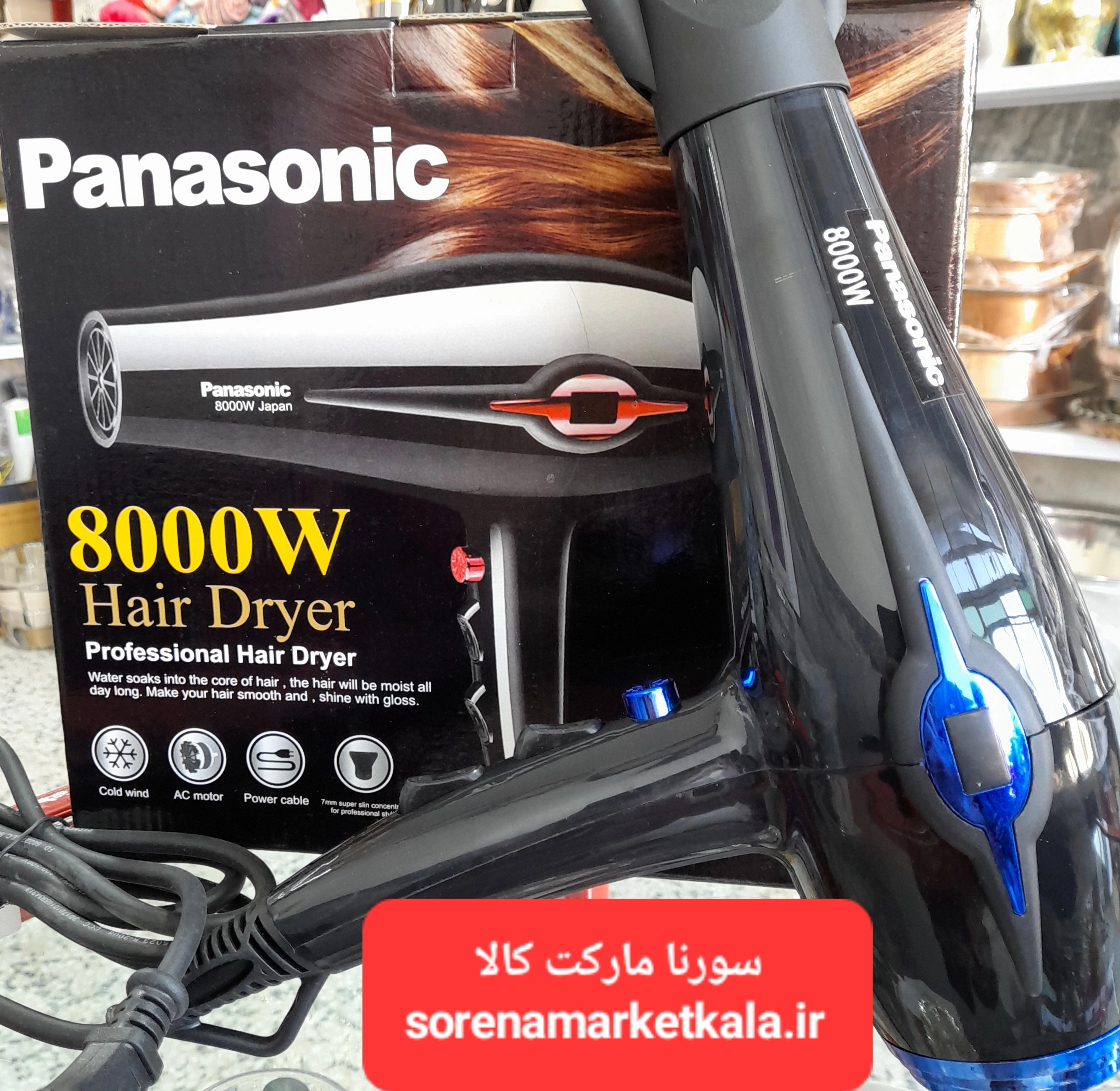 سشوار پاناسونیک ۸۰۰۰ وات با بدنه مقاوم، دارای دکمه سرد، گرم و داغ بسیار پرقدرت و موتور سنگین مناسب برای سالن های آرایشگاه و خانگی می باشد. این مدل از سشوار پاناسونیک دارای حلقه آویز، سری متمرکز کننده باد به همراه دکمه باد سرد فوری و کابل برق بلند و قوی حدودا ۲ متر است. توان مصرفی این سشوار ۸۰۰۰ وات می باشد.